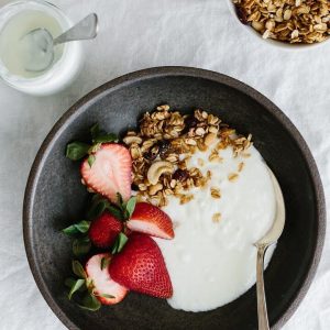 Pour 1 cup of the milk into a small glass. Add the yogurt starter on top and thoroughly mix it in.